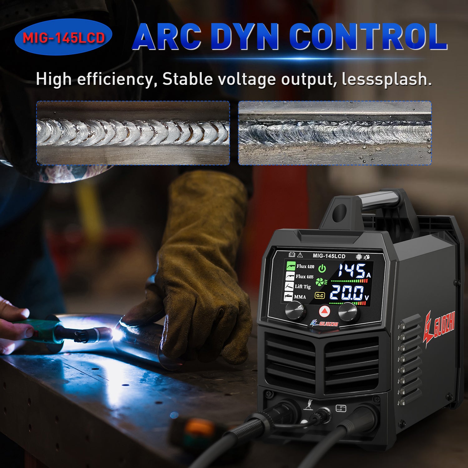 With a maximum output of 145 amps, the GZ GUOZHI MIG-145LCD offers impressive performance for various welding tasks. From small repairs to more demanding welding jobs, this multi-process welder is capable of handling a wide range of materials, including steel, aluminum, and stainless steel. The 145A welder ensures you have the power you need for clean, strong, and durable welds.